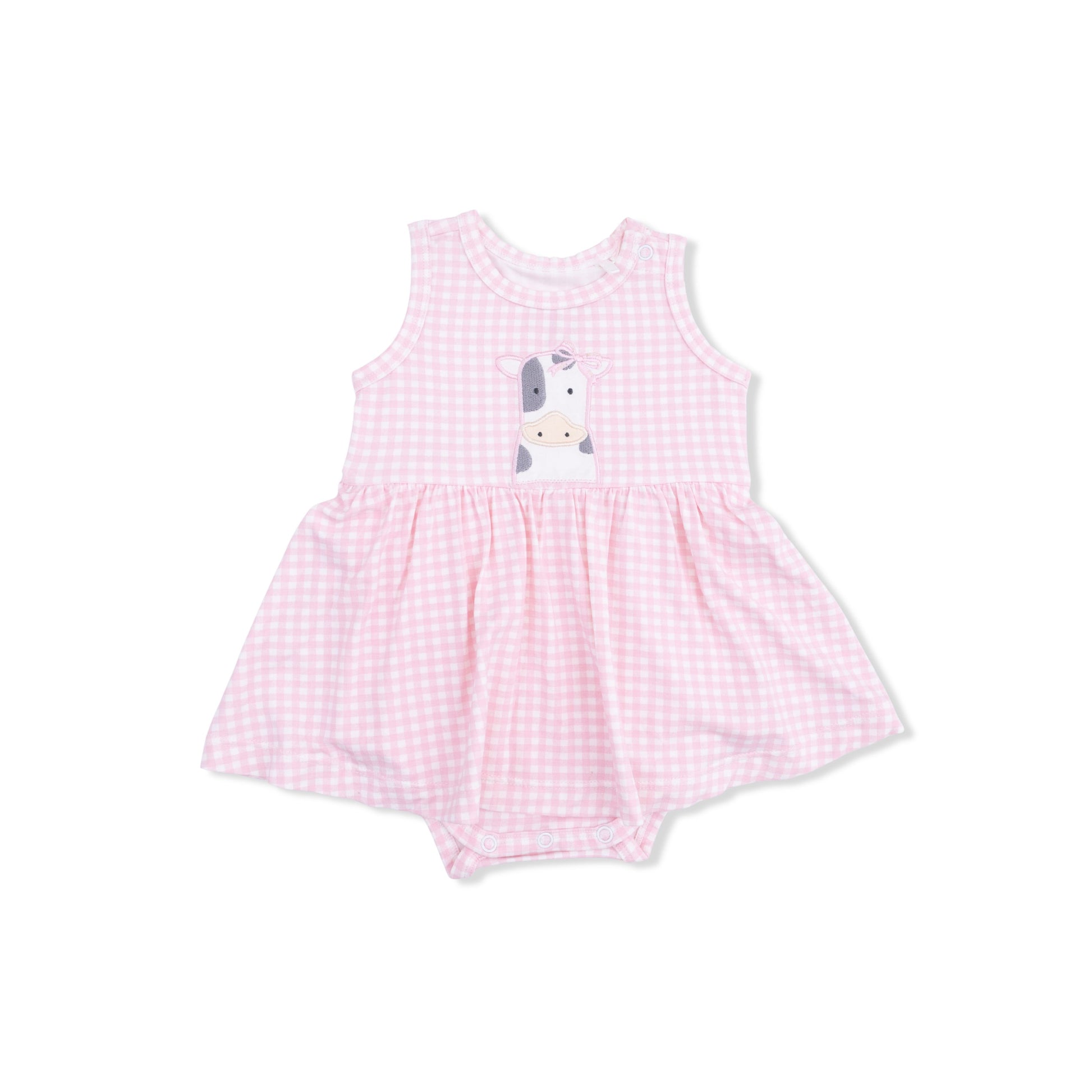 Angel Dear Mini Gingham Pink Embroidered Cow Tank Bodysuit Dress