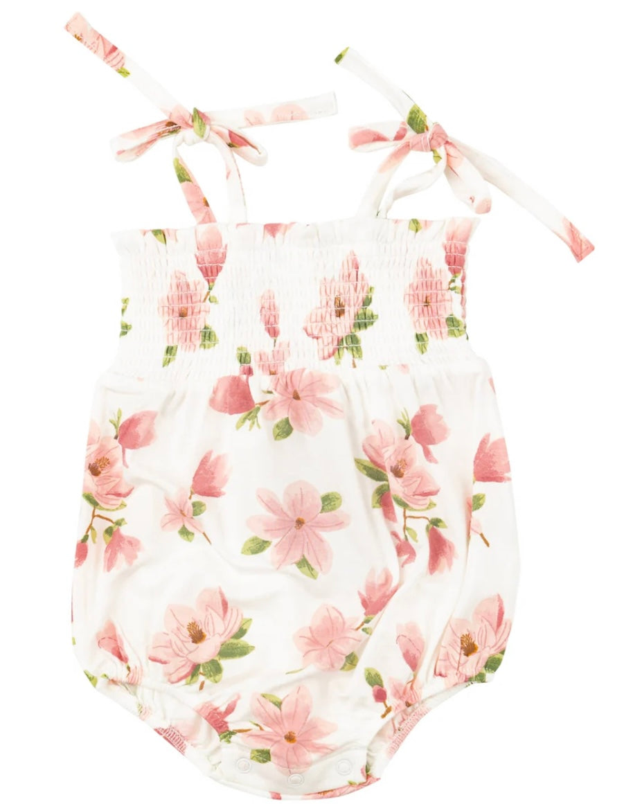 Angel Dear Sweet Magnolias Tie Strap Smocked Bubble