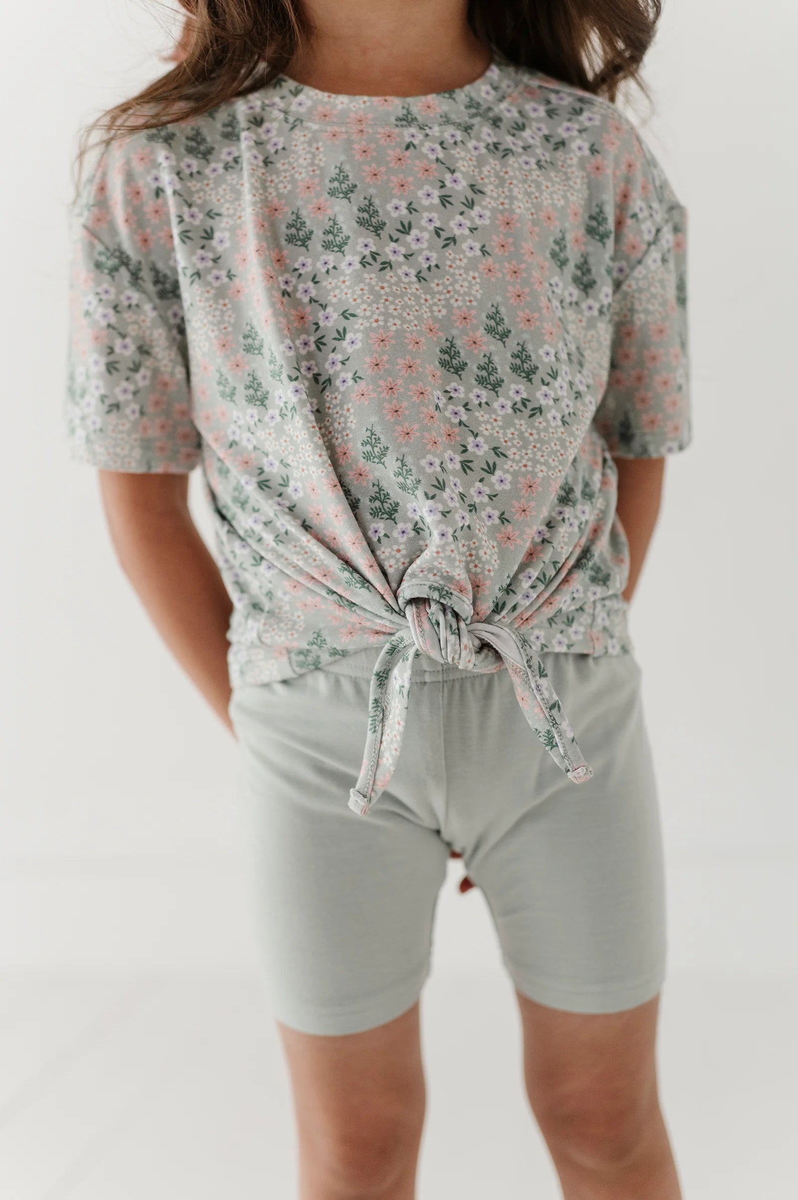 Baby Sprouts Aqua Grey Floral Girls Tie Front Shirt