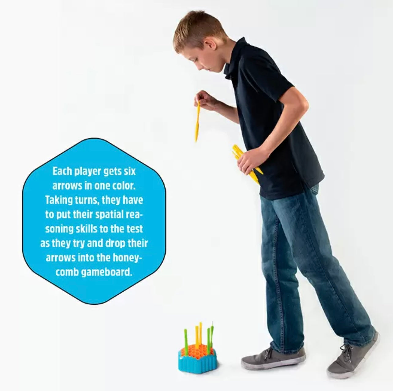 Includes honeycomb game board, 12 arrows (6 in each color)