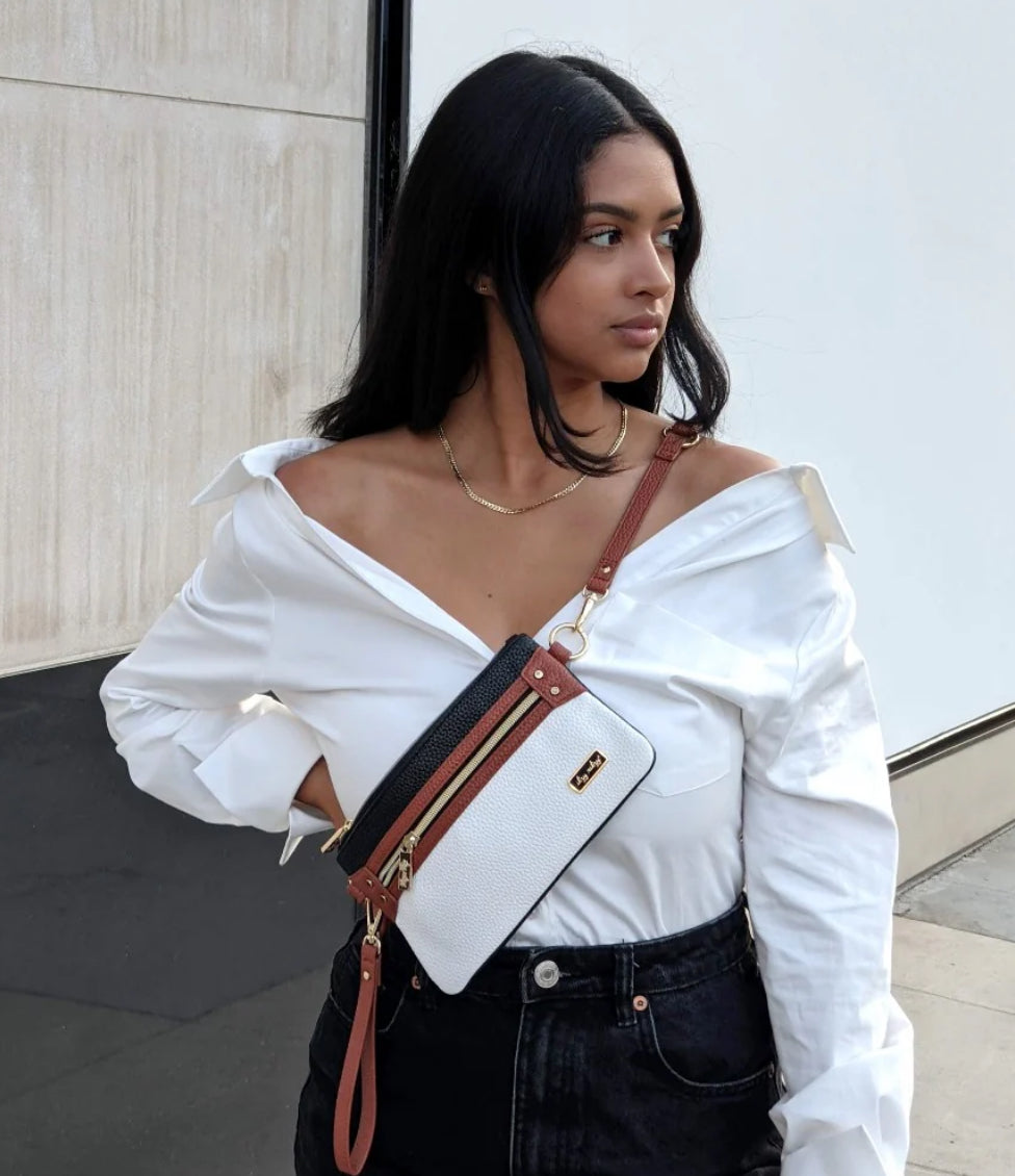Elevate your wallet game with the Boss Pouch™. Converting easily into a wristlet, crossbody purse, or belt bag, this wallet does it all (just like you!) while holding your cell phone, 6 card slots & 2 zippered pockets.