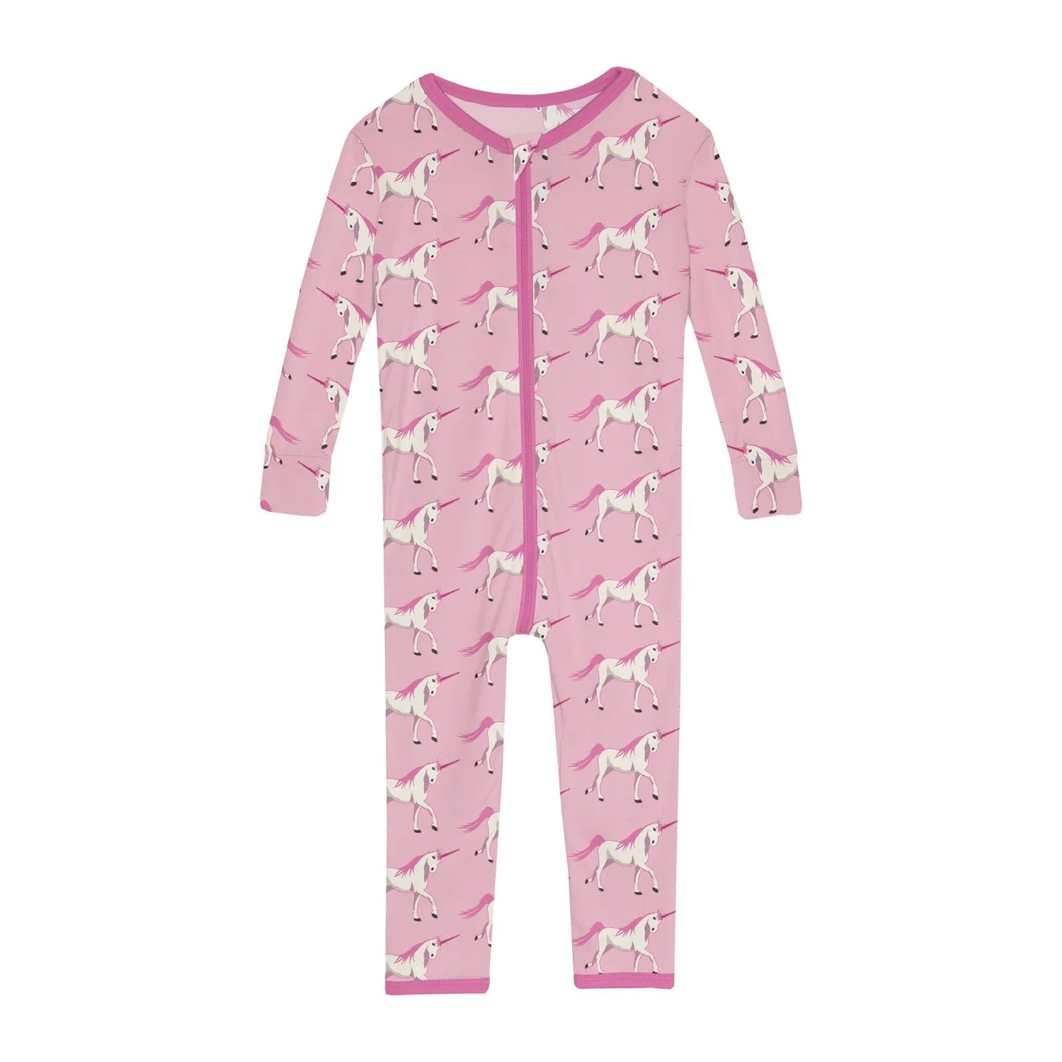 What's a better feeling than zipping your tiny peanut into an adorably snug sleeper? Getting to warm their little fingers and toes with flip paws and footies, that's what! They'll love this coverall for its comfort, and you'll love this coverall for its cuteness and its torso length zipper which makes changes a breeze. Flip into fun with KicKee!