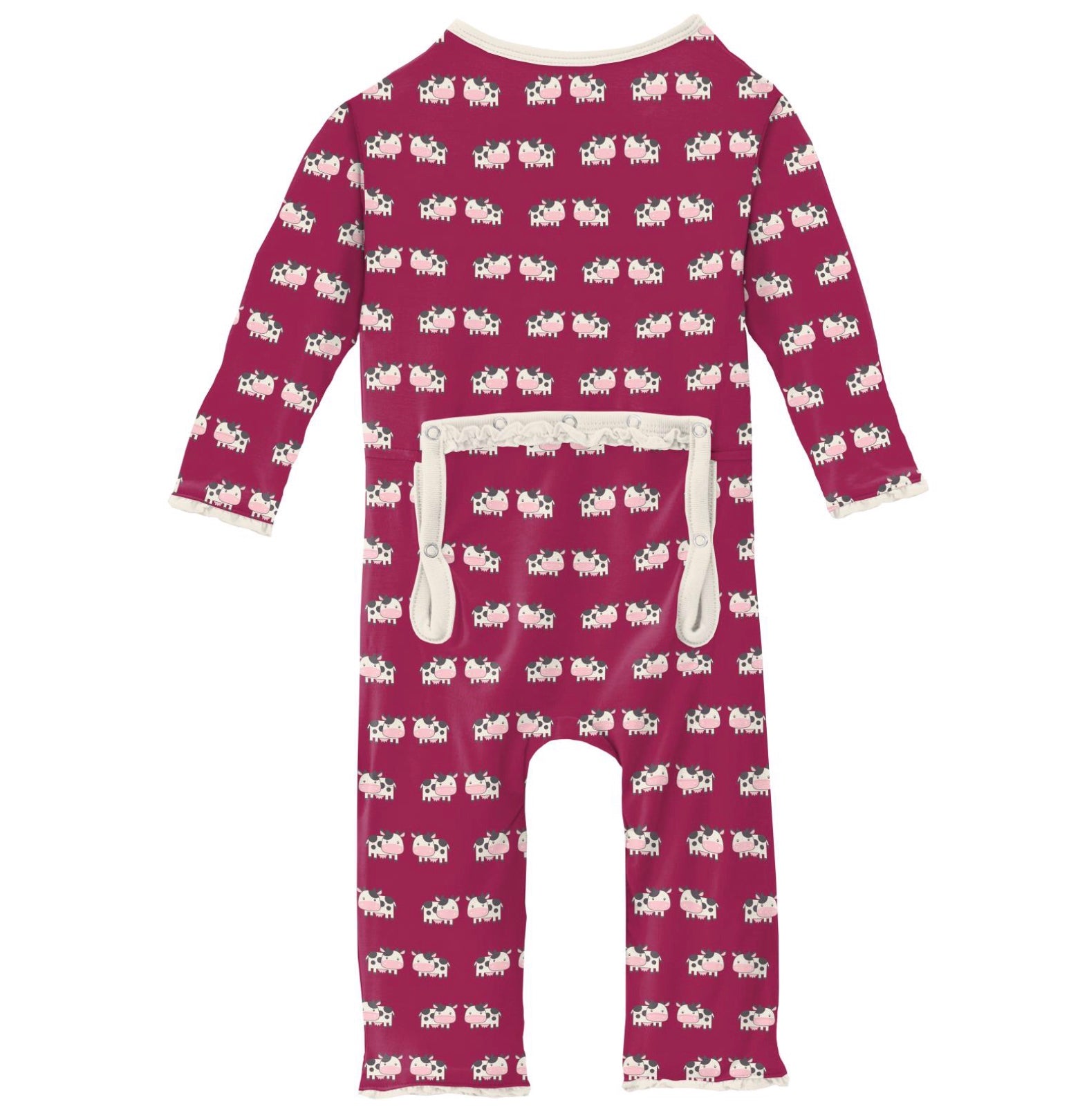 Kickee Pants Berry Cow Muffin Ruffle Coverall with Zipper