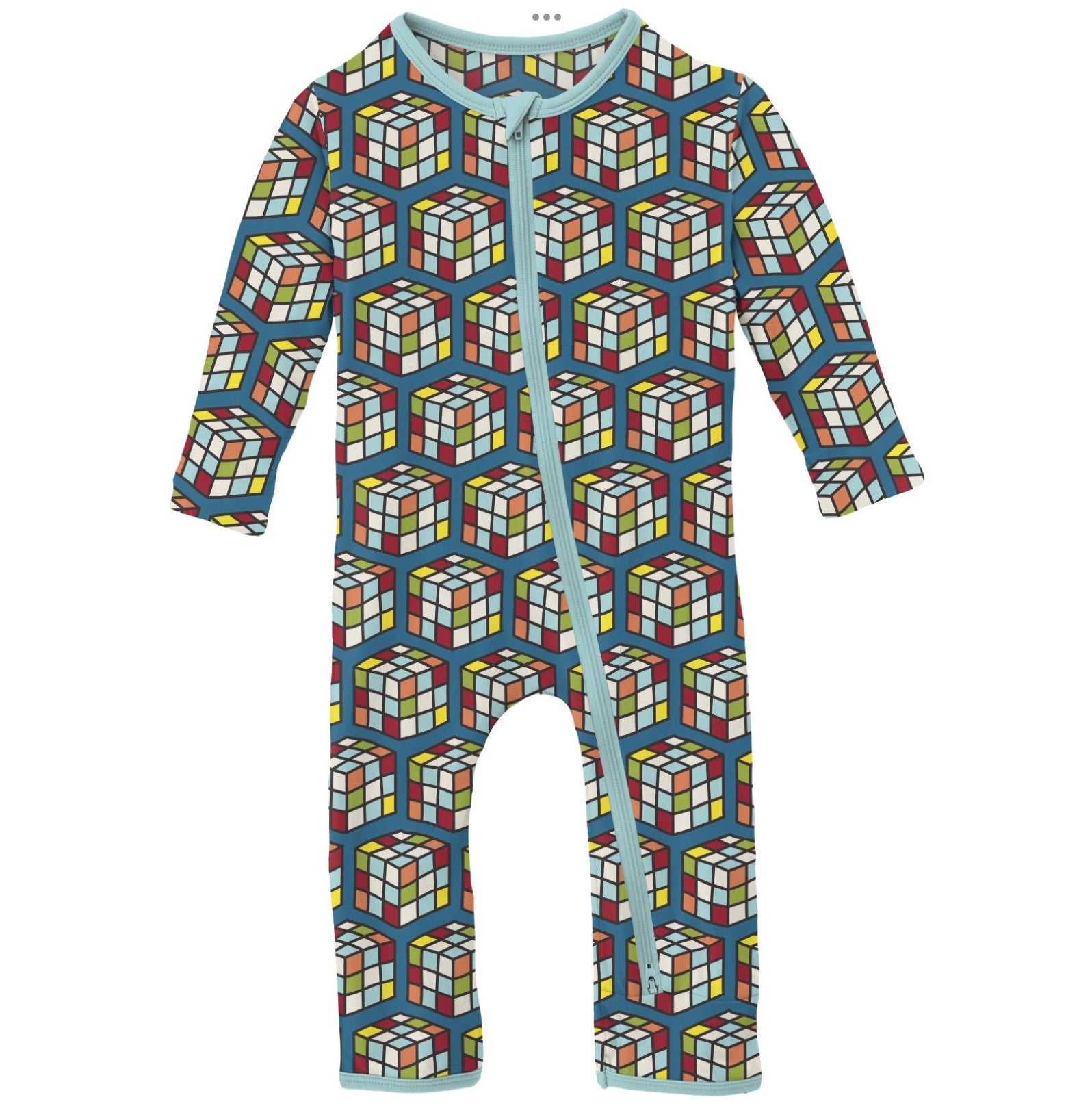 Kickee Pants Cerulean Blue Puzzle Cube Coverall with 2 Way Zipper