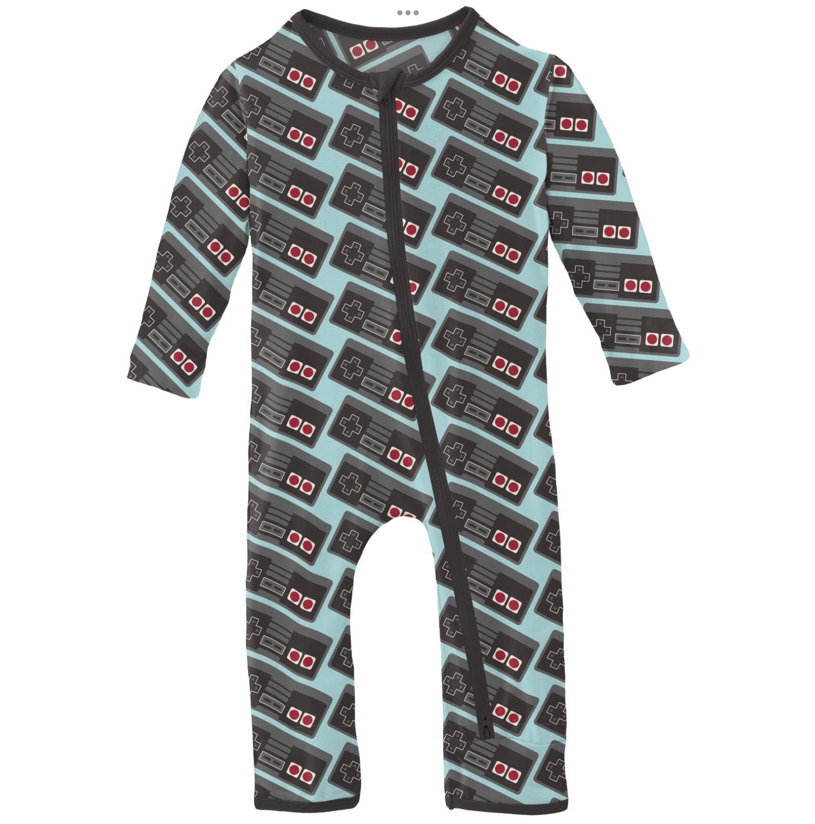 Kickee Pants Summer Sky Retro Game Controller Coverall with 2 Way Zipper