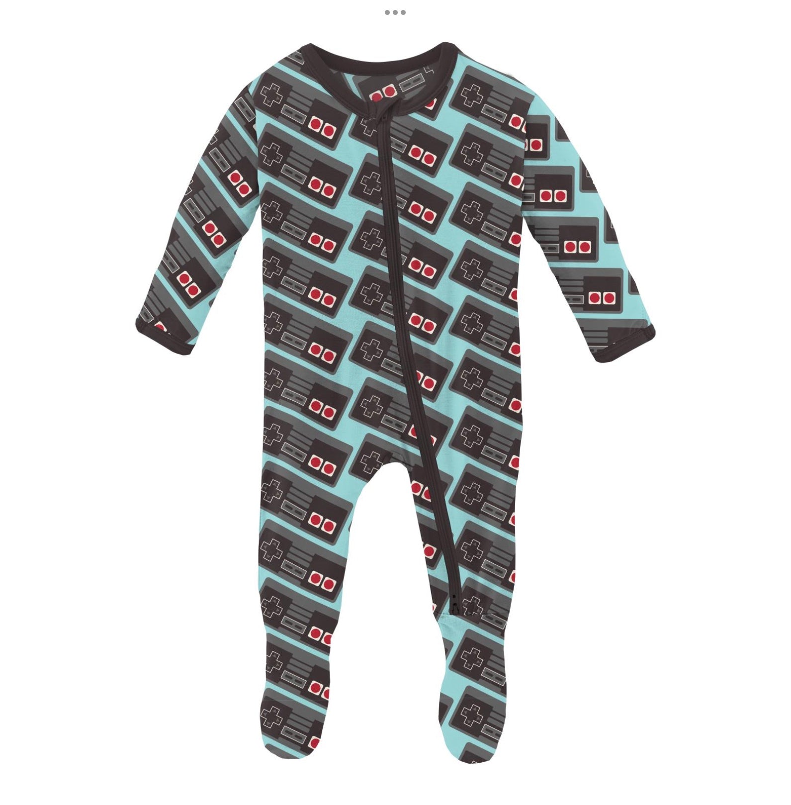 Kickee Pants Summer Sky Retro Game Controller Footie with 2 Way Zipper