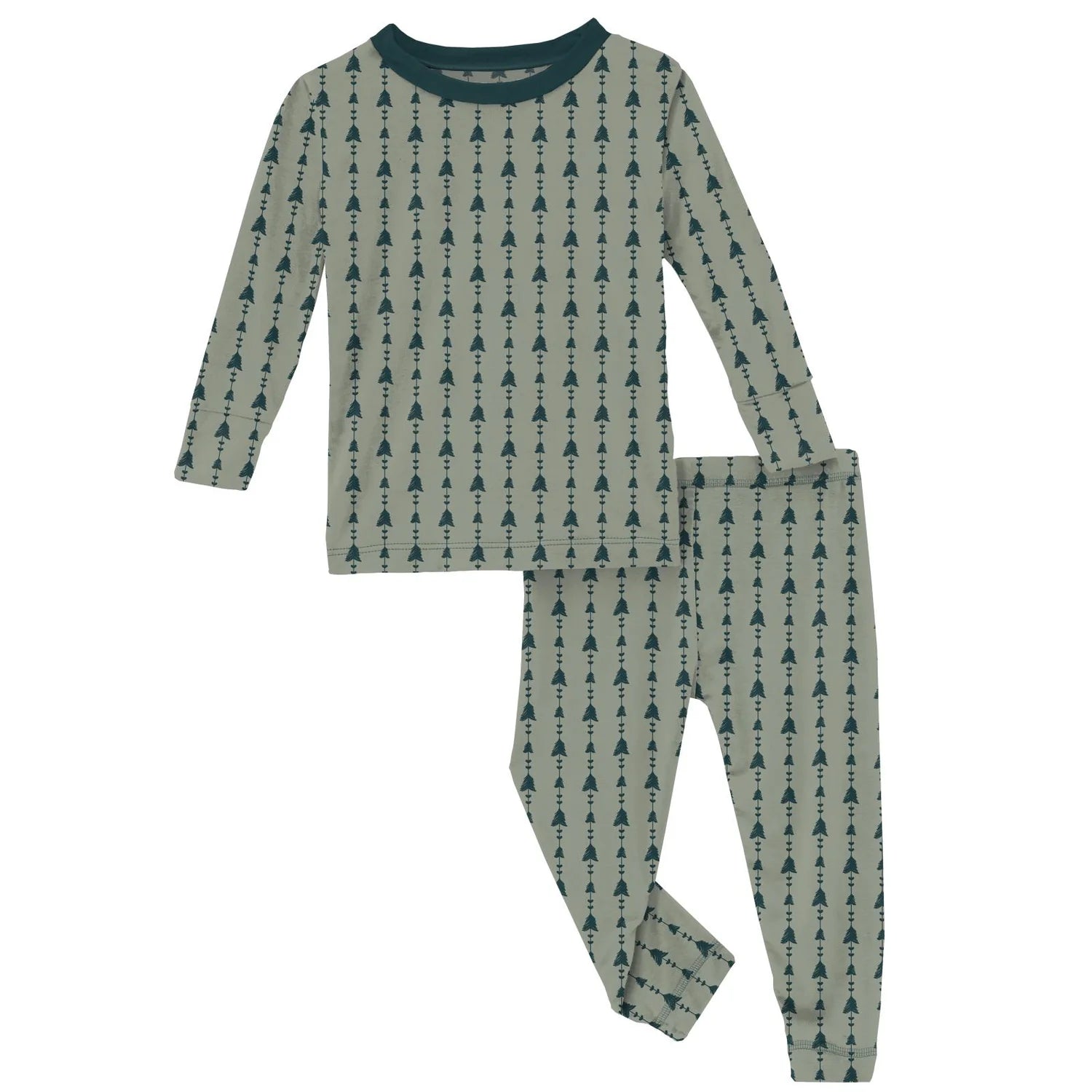Kickee Silver Sage Trees & Hearts Long Sleeve Pajamas