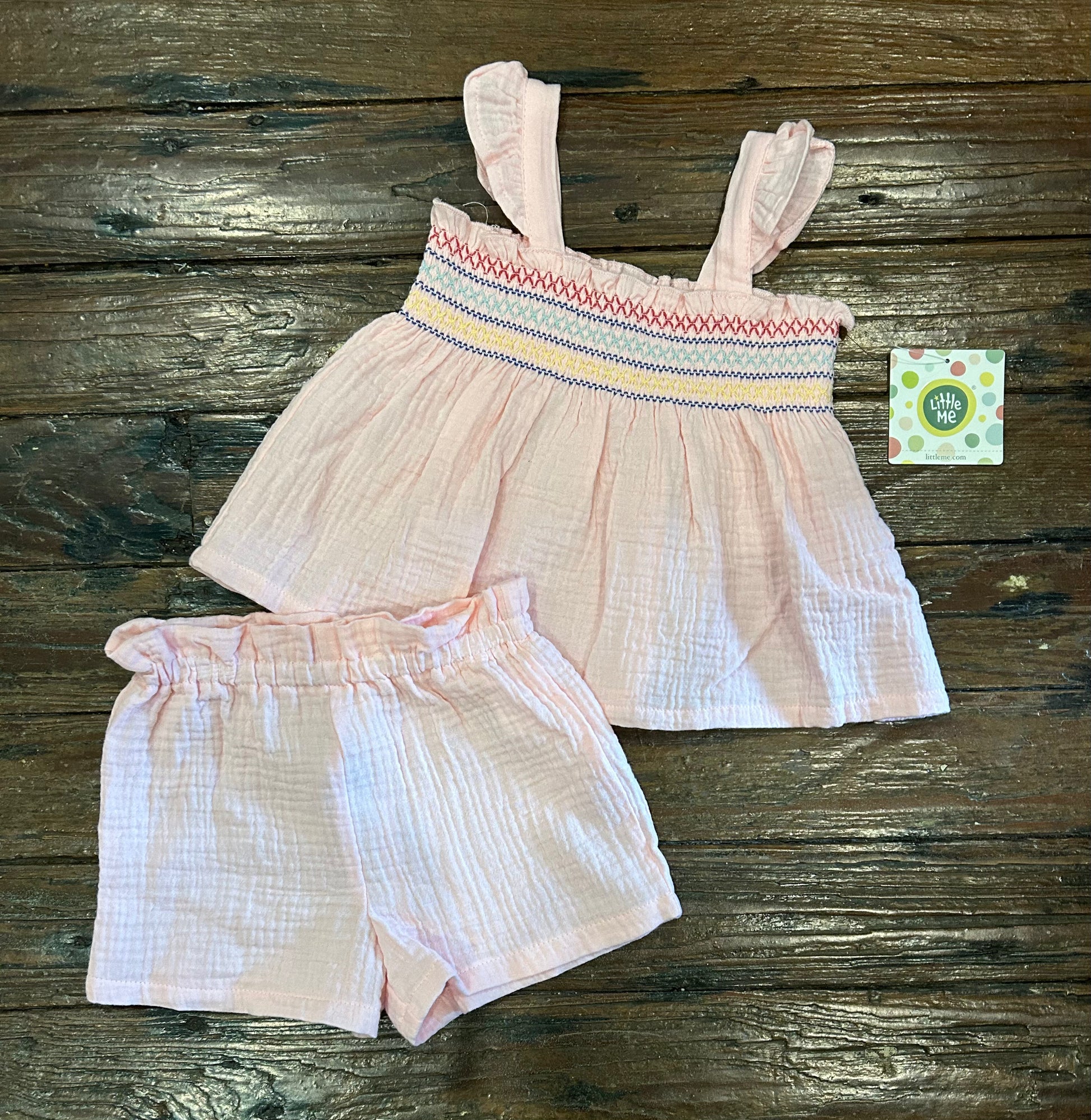Little Me Pink Muslin Embroidered 2 PC Play Set