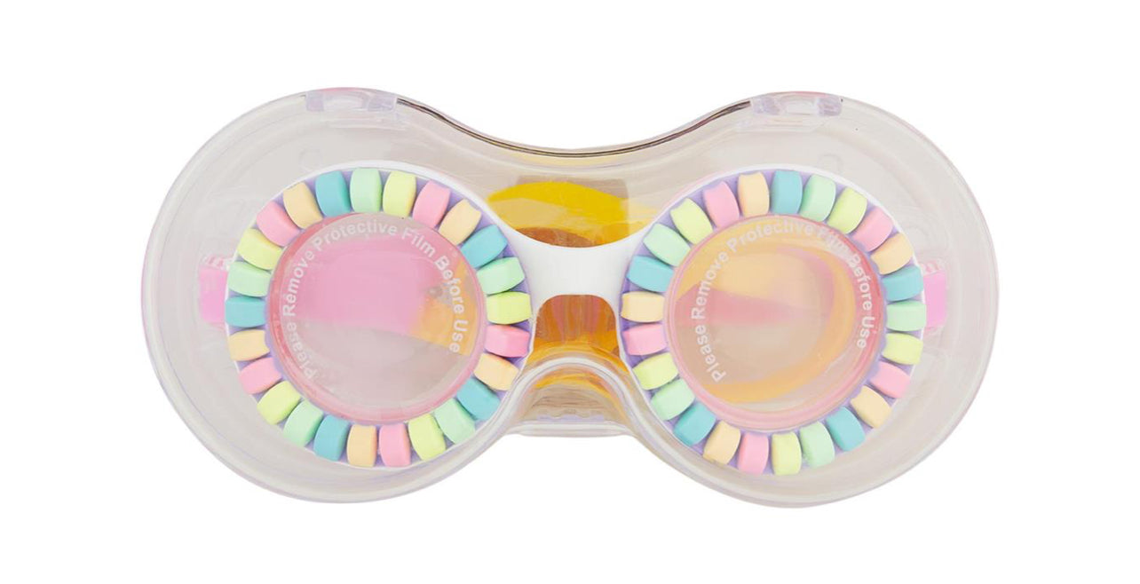 UV protected silicone swim goggles with adjustable soft silicone straps. Comes with plastic storage container.
