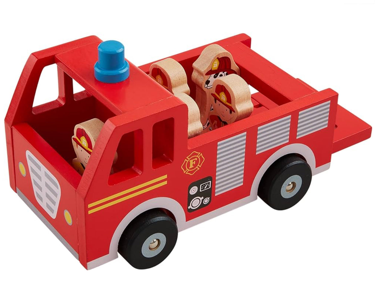 The Firetruck Wood Vehicle Set offers an enjoyable and engaging play experience for children. This set features a wooden firetruck with movable parts, including a ladder that can be raised and lowered. Additionally, two firefighter figures are included, allowing kids to place them inside the truck for added realism. With this toy, children can let their imagination run wild as they create thrilling rescue missions and become heroes. Made from durable wood and painted in vibrant colors, the firetruck is visually appealing to young ones. Not only does this toy provide entertainment, but it also aids in the development of fine motor skills and fosters creative play.