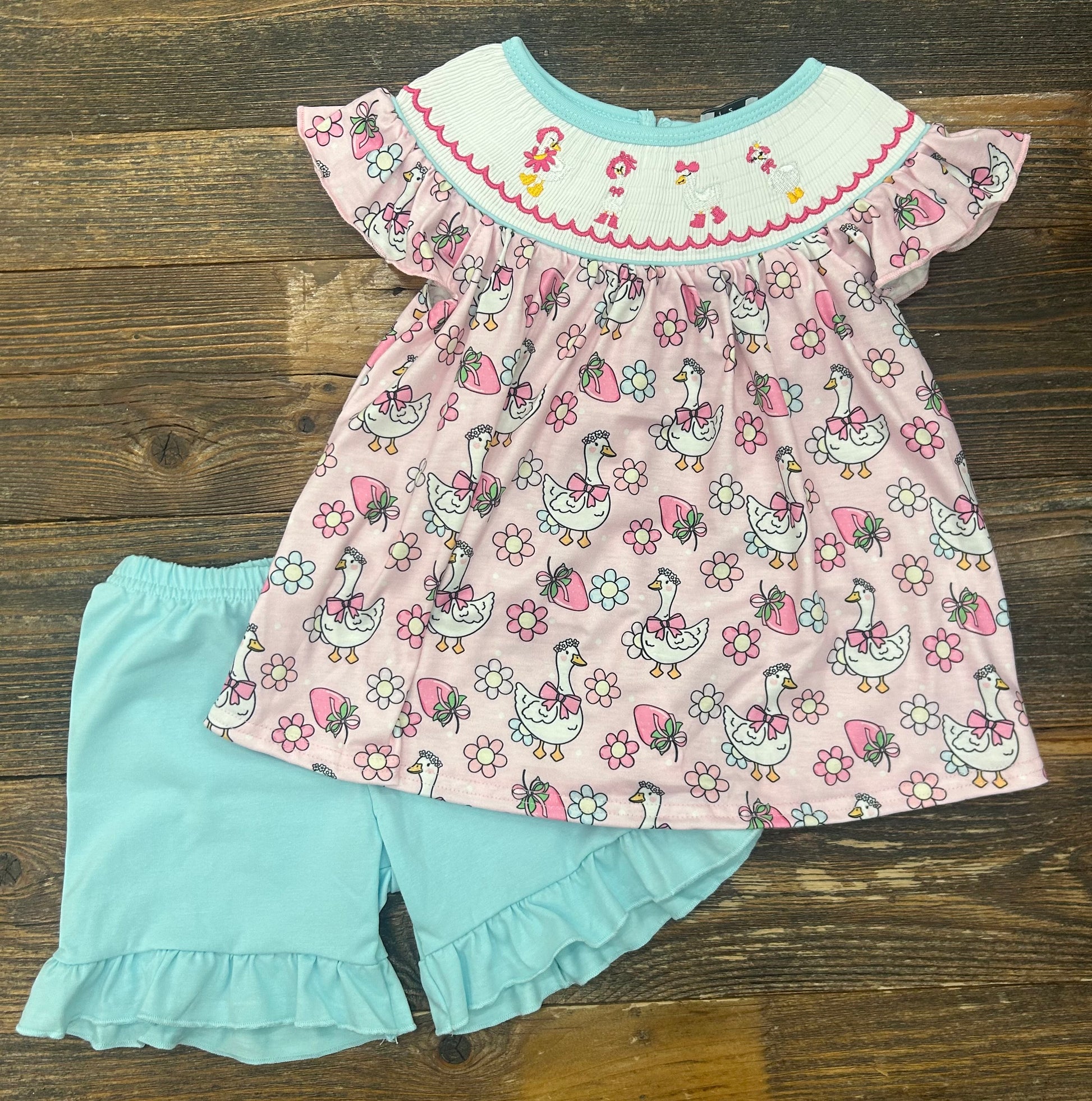 Pink Goose Floral Smocked Short Set