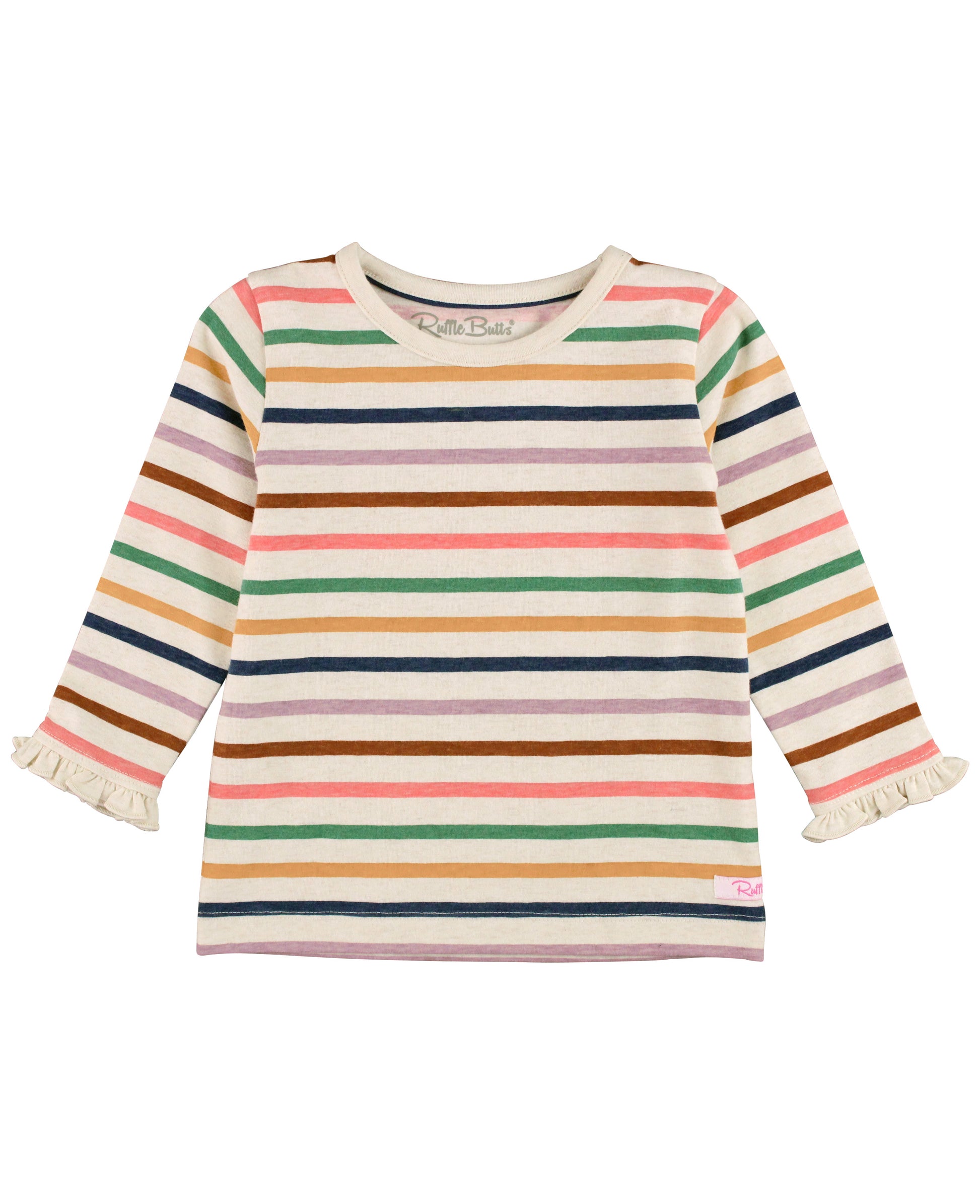 RuffleButts Sunrise Rainbow Stripe Knit Long Sleeve Ruffle Sleeve Top