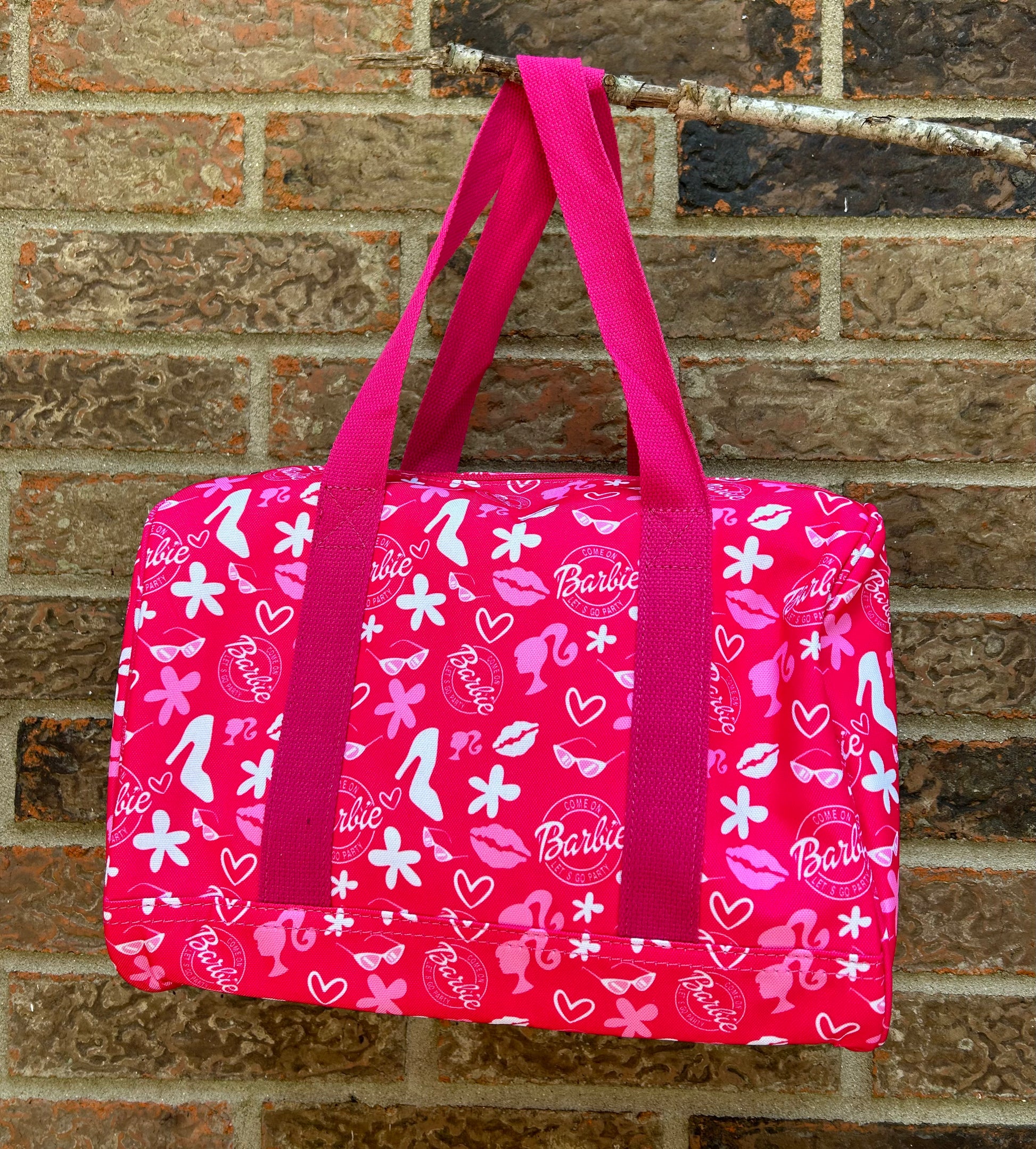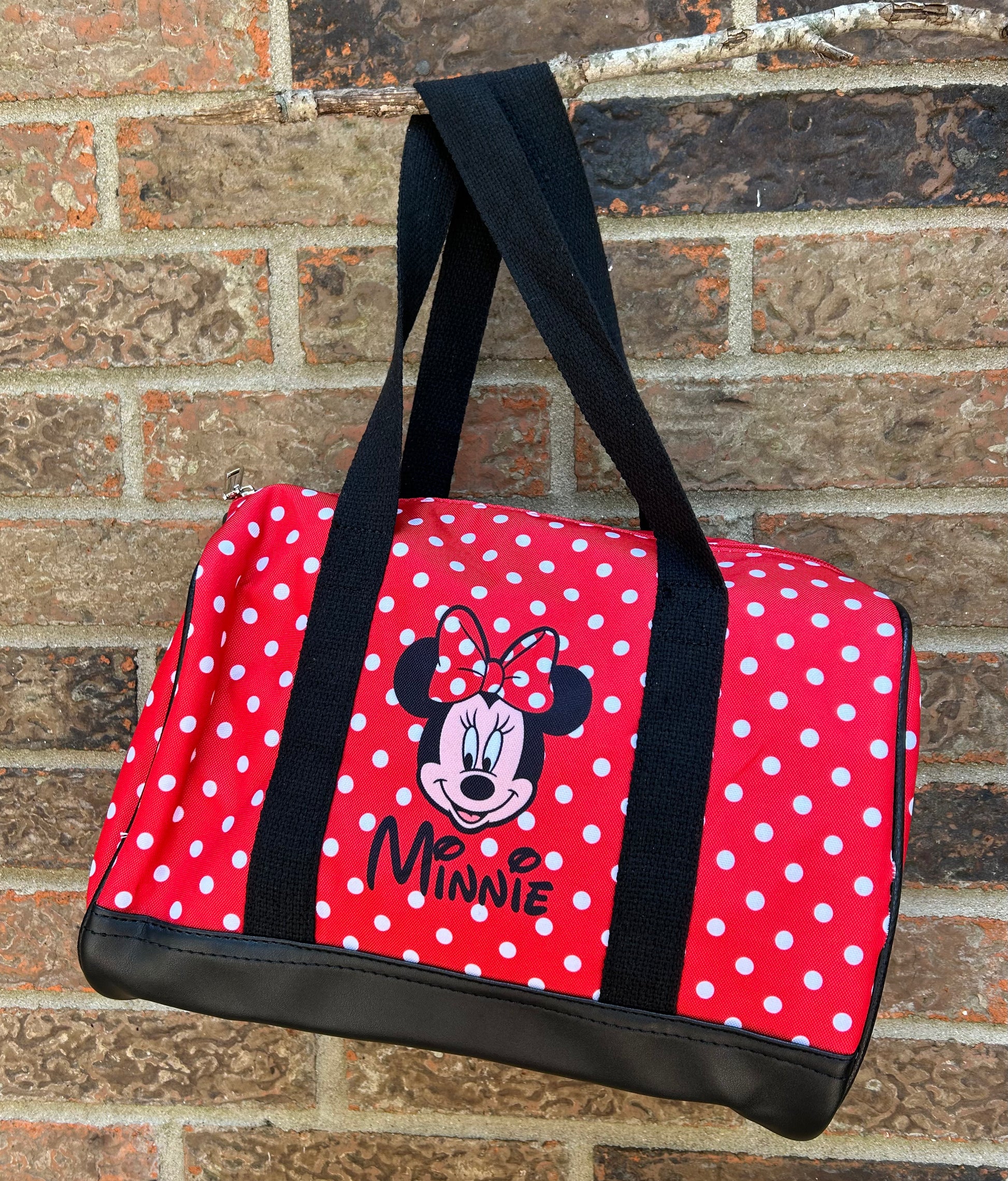 These are measuring L 13.4” x W 8” x H 9.5”. A shoulder strap is also included! These are perfect for a weekend getaway!