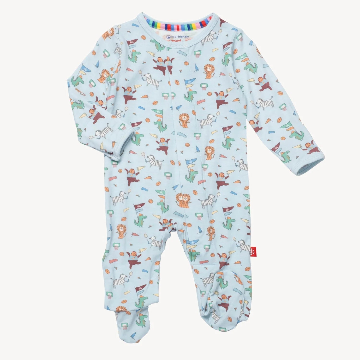our parent favorite footie is an everyday (and night) essential with magnetic closures that make dressing easy. magnets are quick, quiet, and a lifesaver for middle-of-the-night changes. eco-friendly TENCEL™ modal is silky soft, breathable, and gentle on sensitive skin. temperature-regulating properties will keep warm in winter, you cool in summer, and oh-so comfortable year round.
